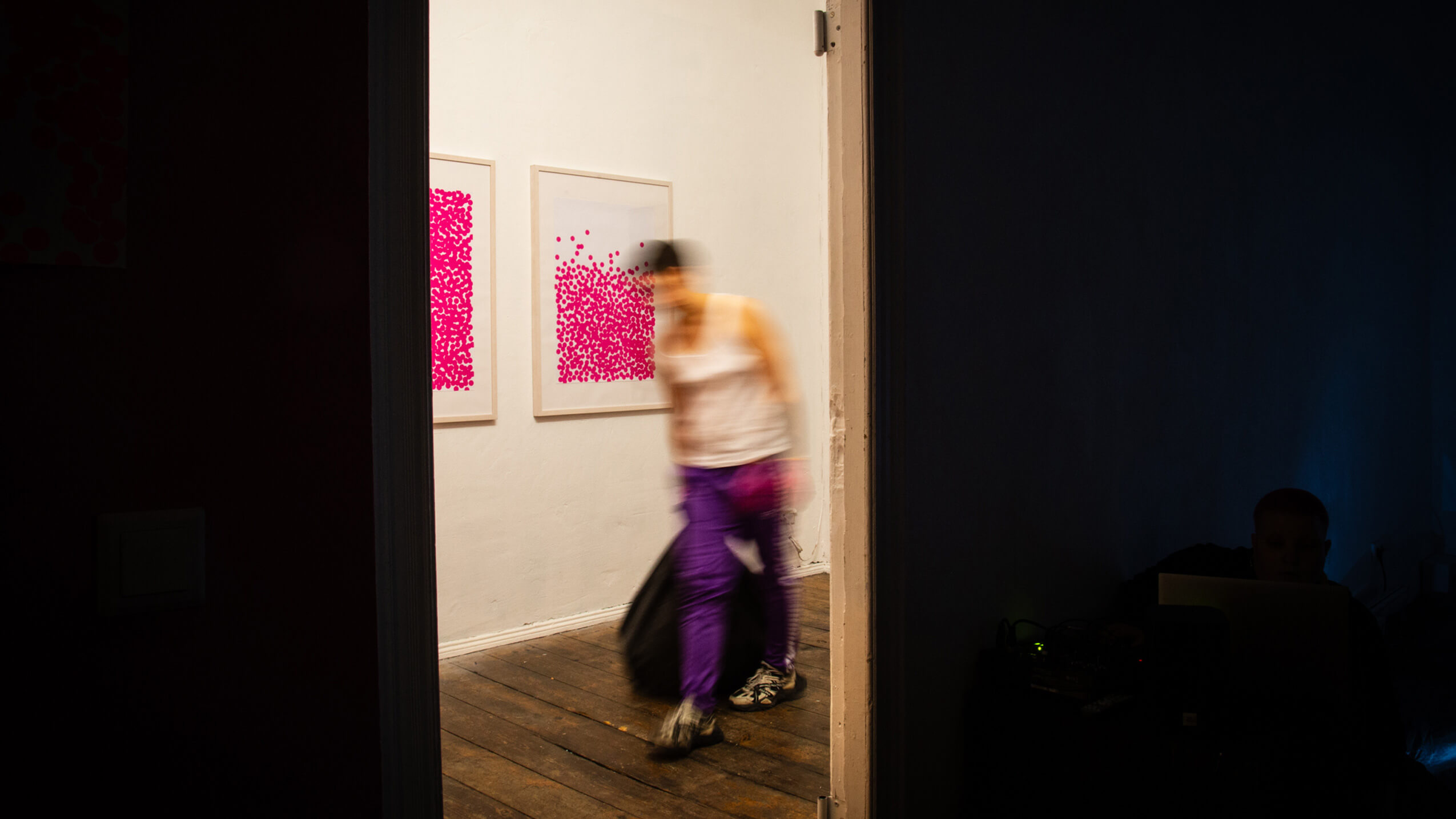 CLOSING. Das Closing bezeichnet die Zeit des letzten DJ-Sets, eine flüchtige und instabile Zeit des Übergangs. Die meisten Ravenden haben den Rave bereits verlassen. Ein undefinierbares Grenzgebiet zwischen gegebener Realität und queerem Disworlding bleibt für einen kurzen Zeitraum aufrecht. Ein mehrdeutiger Ort der Kräfte-und Machtverschiebungen, an dem sich (Geistes)zustände langsam zur „Normalität“ verändern. Ein sich leerender Raum, der ein Dazwischen bleibt, sich aber gleichzeitig mit hegemonialem Kontext anreichert und in dem die normative Zeit langsam die subjektiv/kollektive andere Strukturierung des Beats übernimmt. Die Intensität der körperlichen Erfahrung ist durch die Erschöpfung hindurch noch spürbar, das counter-intuitive Verständnis für einander noch immer präsent – aber auch spürbar verblassend. Das Closing ist ein unwirkliches Driften zwischen Realitäten, formlos, bedeutungslos, eine Zeit des Nicht-Seins, der Nicht-Zugehörigkeit und des Geisterhaften. Ohne Begehren, Wünsche oder Sehnsüchte und doch eine Zeit des sich vollziehenden Verlusts. Während alle Bedürfnisse, Hoffnungen, Ziele, Absichten verpufft sind, sind die schwitzenden Körper noch synchronisiert und pulsieren ohne Anstrengung. Verschwendete Zeit der schmutzigen Reste und kaputten Überbleibsel, Zeugen einer un/bewussten Gegenwart.