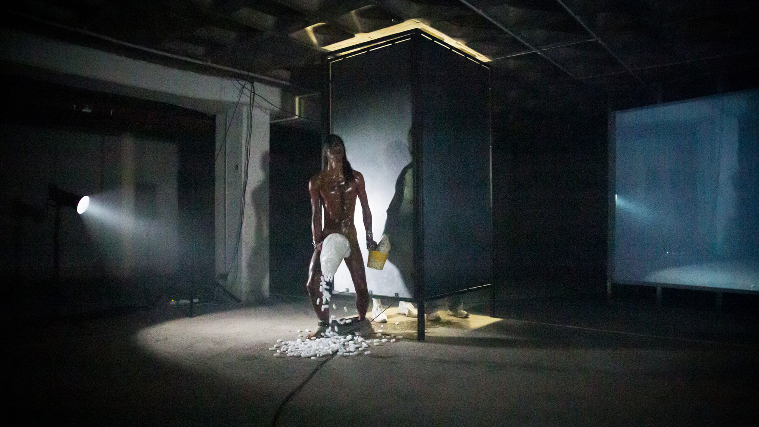 Questioning the im/possibility of a collective reality through representation and cultural wars the performance focuses on the urgency and immediacy of the subjective experience in a post-queer, anti-academic, counter-consumerist and camp approach. The multidimensional performance includes and merges theory, random toilet conversations, sex noises, influencer content, anonymous online reviews, explicit nudity/exposure and exhaustion.