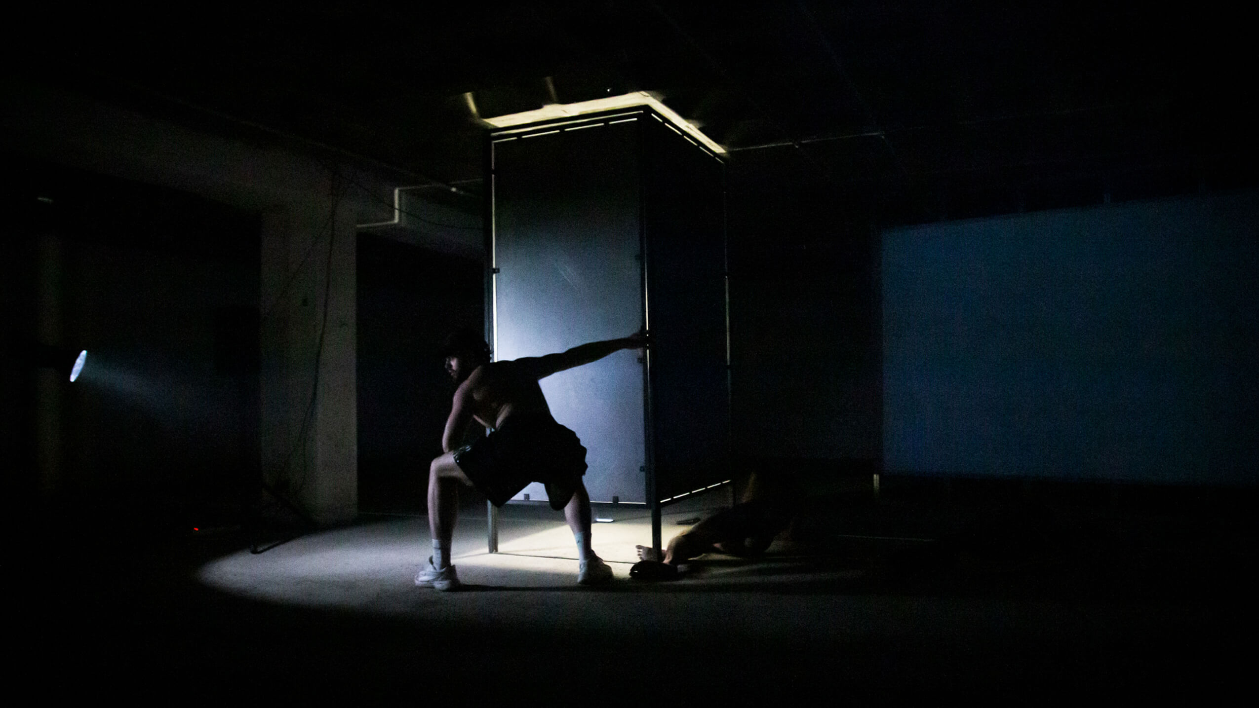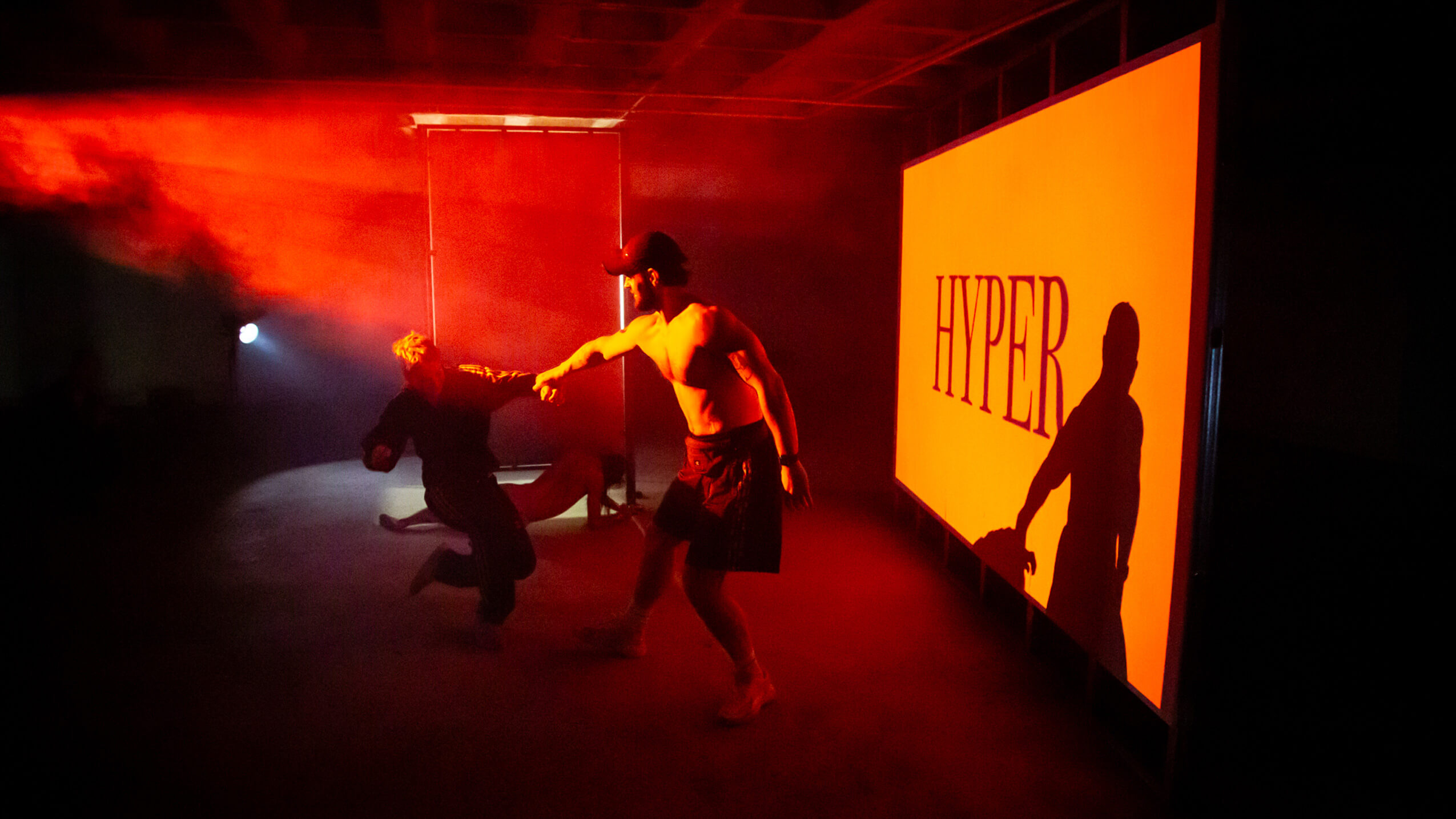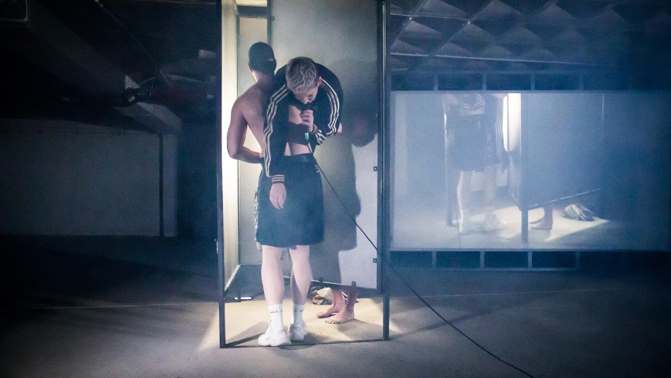 (de) Raving als Driften zwischen bewussten/unbewussten, subjektiven/kollektiven Realitäten. Die Performer*innen kanalisieren die Erschöpfung der erzwungenen hegemonialen Teilnahme als marginalisierte Außenseiter*innen, Freaks und villains, indem sie Ausgrenzung umkehren, um Sichtbarkeit zu erlangen und ihr digitales antisoziales Image in Frage zu stellen. Das Publikum wird eingeladen, an einer liminalen Praxis teilzunehmen, die nicht offenbart oder erklärt wird und die Übersetzung von Erfahrung in Bedeutung verweigert: Eine Toilettenkabine wird zu einem angeeigneten, besetzten, transformierten Raum für kollektive Intimität durch eine Vielzahl von gegenläufigen Praktiken, die zwischen pleasure drive/death drive, Lust/Scham, Intimität/Entfremdung, Souveränität/Abhängigkeit oszillieren.