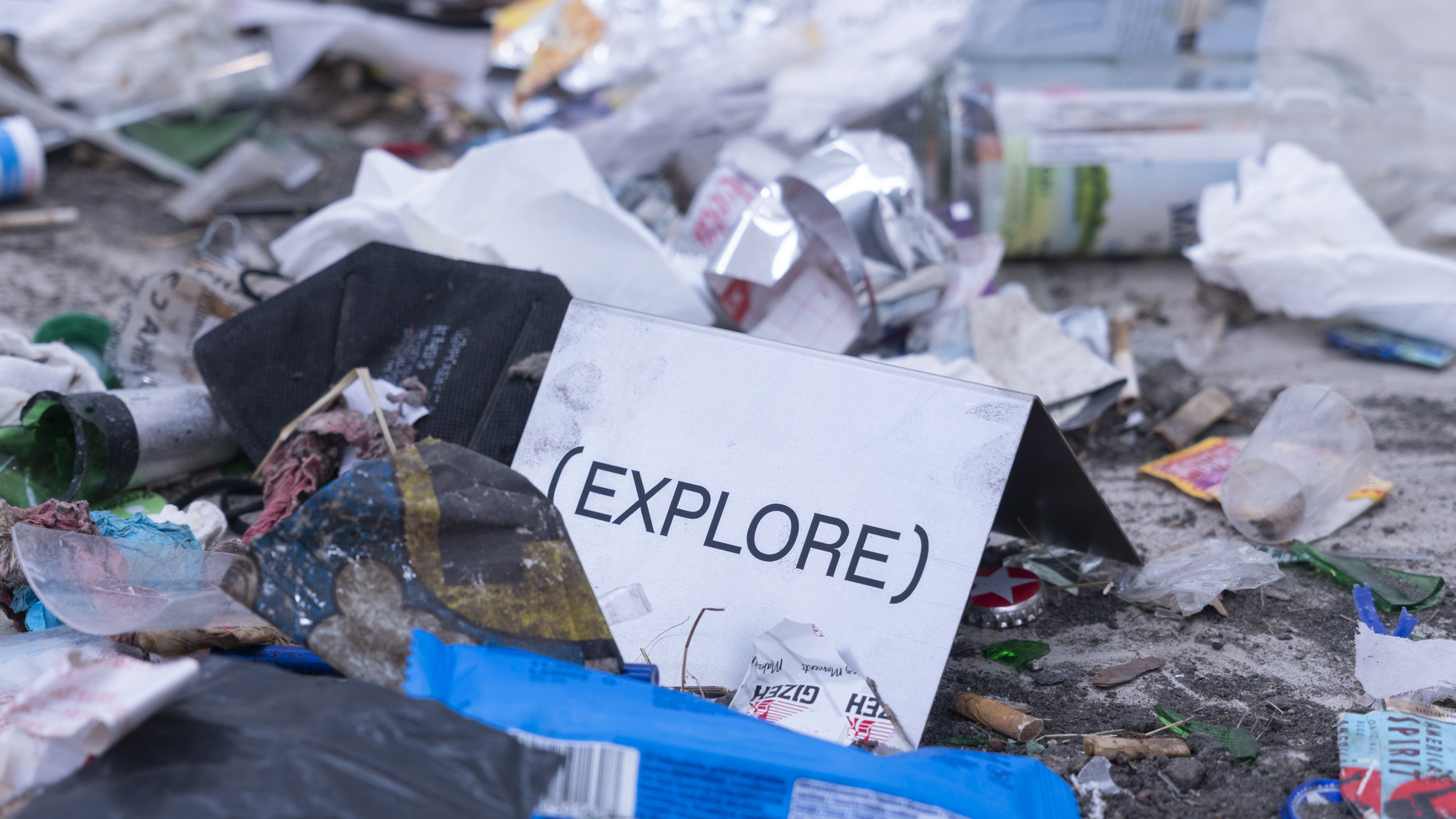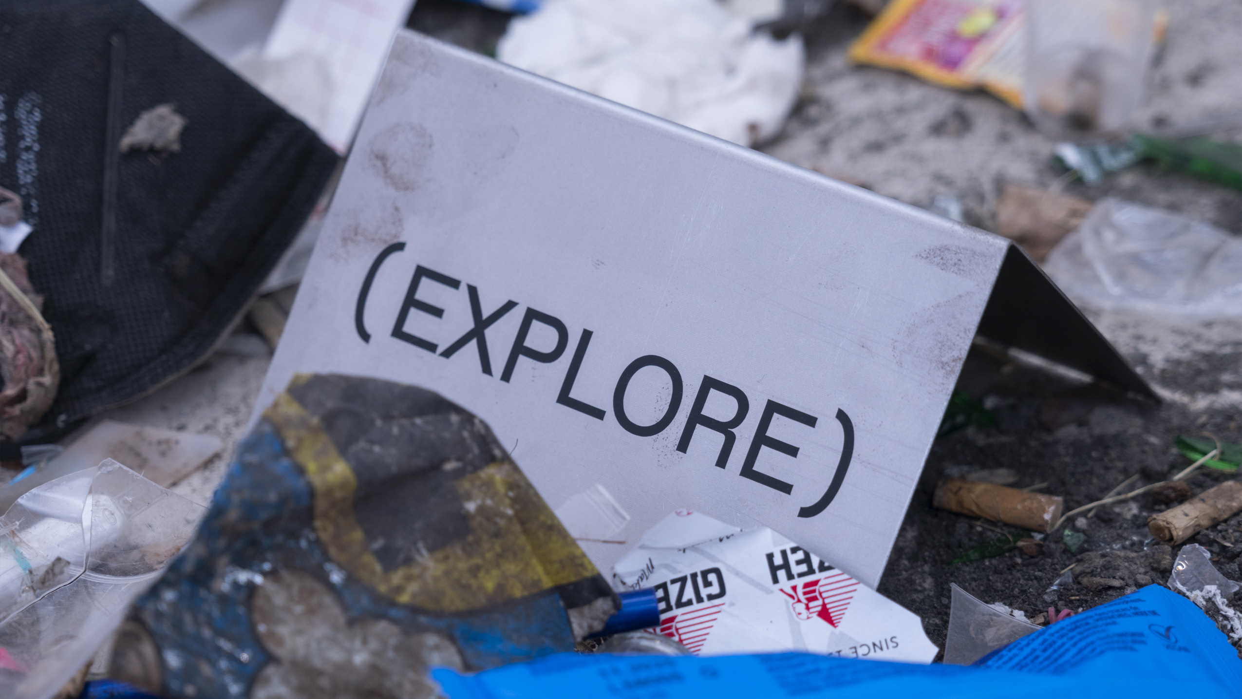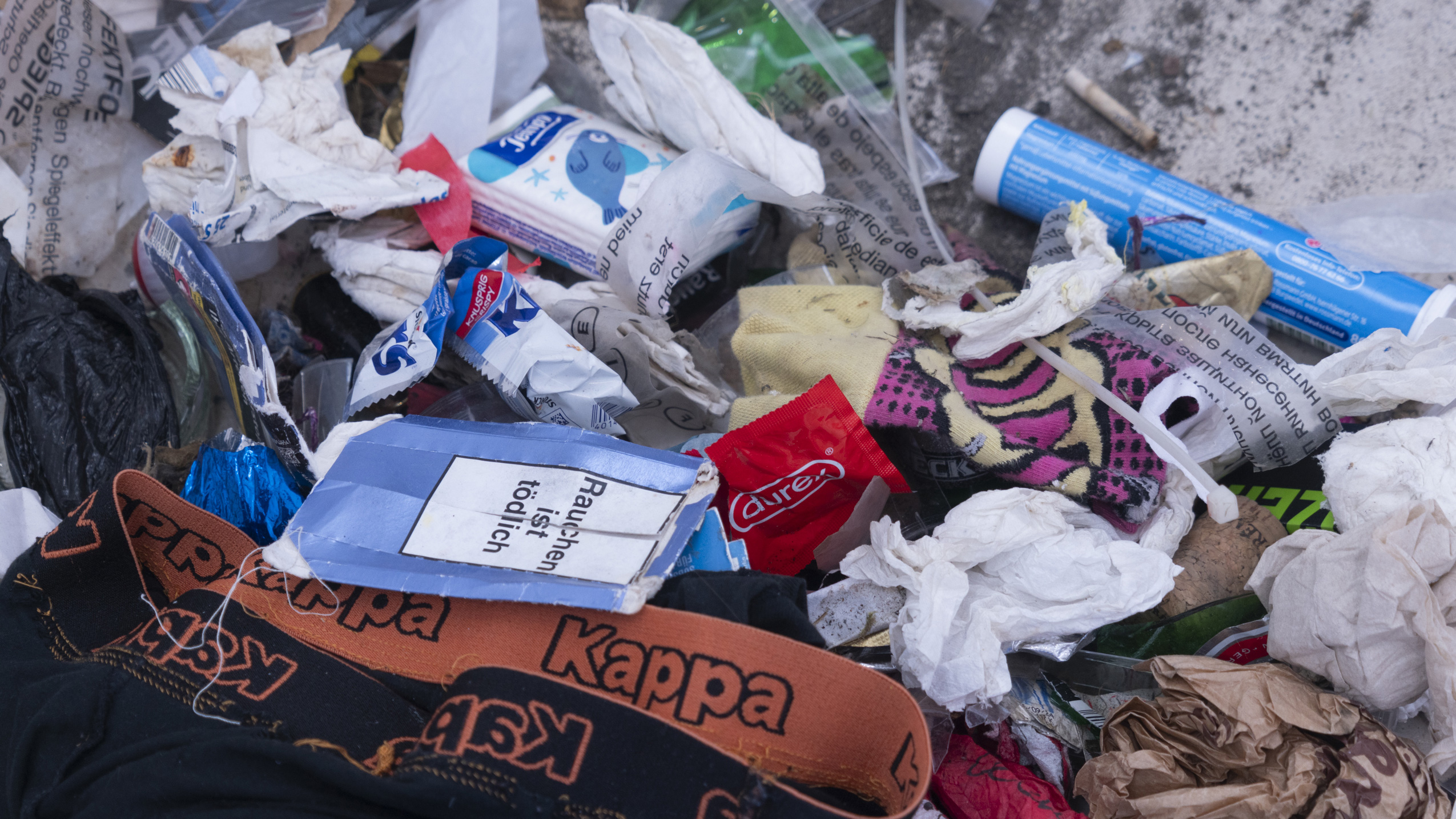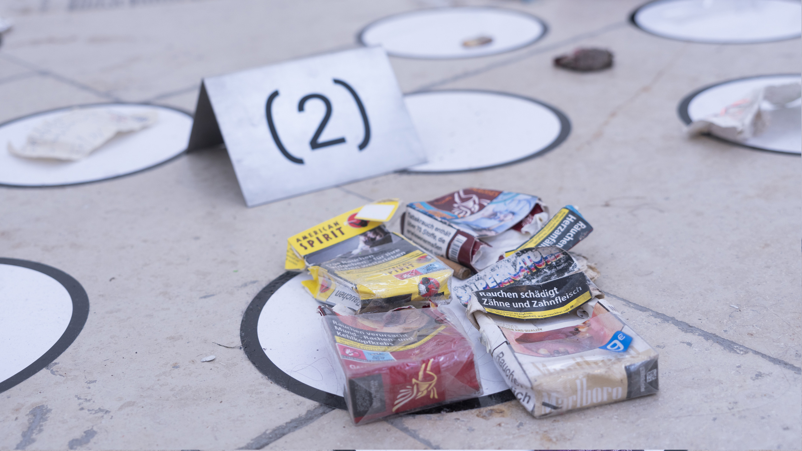 (NOTE: Die Sicherheitsbeauftragten der Universität der Künste Berlin wollten die Installation zunächst nicht zulassen. Nachdem sie darauf hingewiesen wurden, dass es sich bei dem Müll um Überreste einer queeren Cruising-Party handelte, verwiesen sie auf ein erhöhtes Verletzungs- und Infektionsrisiko.)