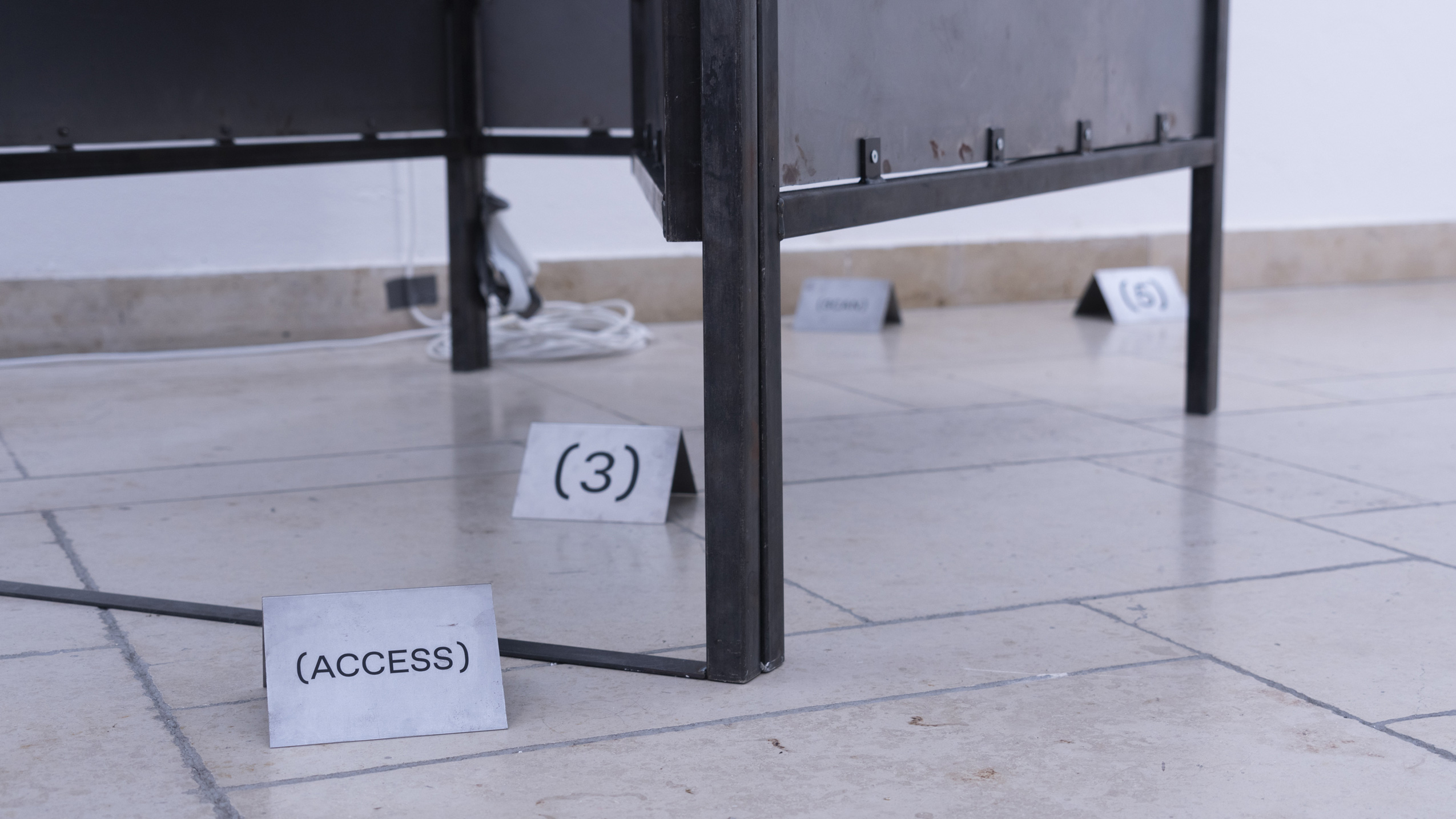 (IN/OUT)SIDEWAYS is conceived like a crime scene and becomes more accessible through action-based instructions. The installation is composed of the remains of the performances CLOSING.THE ARCHIVE., The Conversation Drive, and HYPER DENSITY. It also includes elements from STALL/SHRINE and the works SUNDAY/MONDAY and GLOVES.