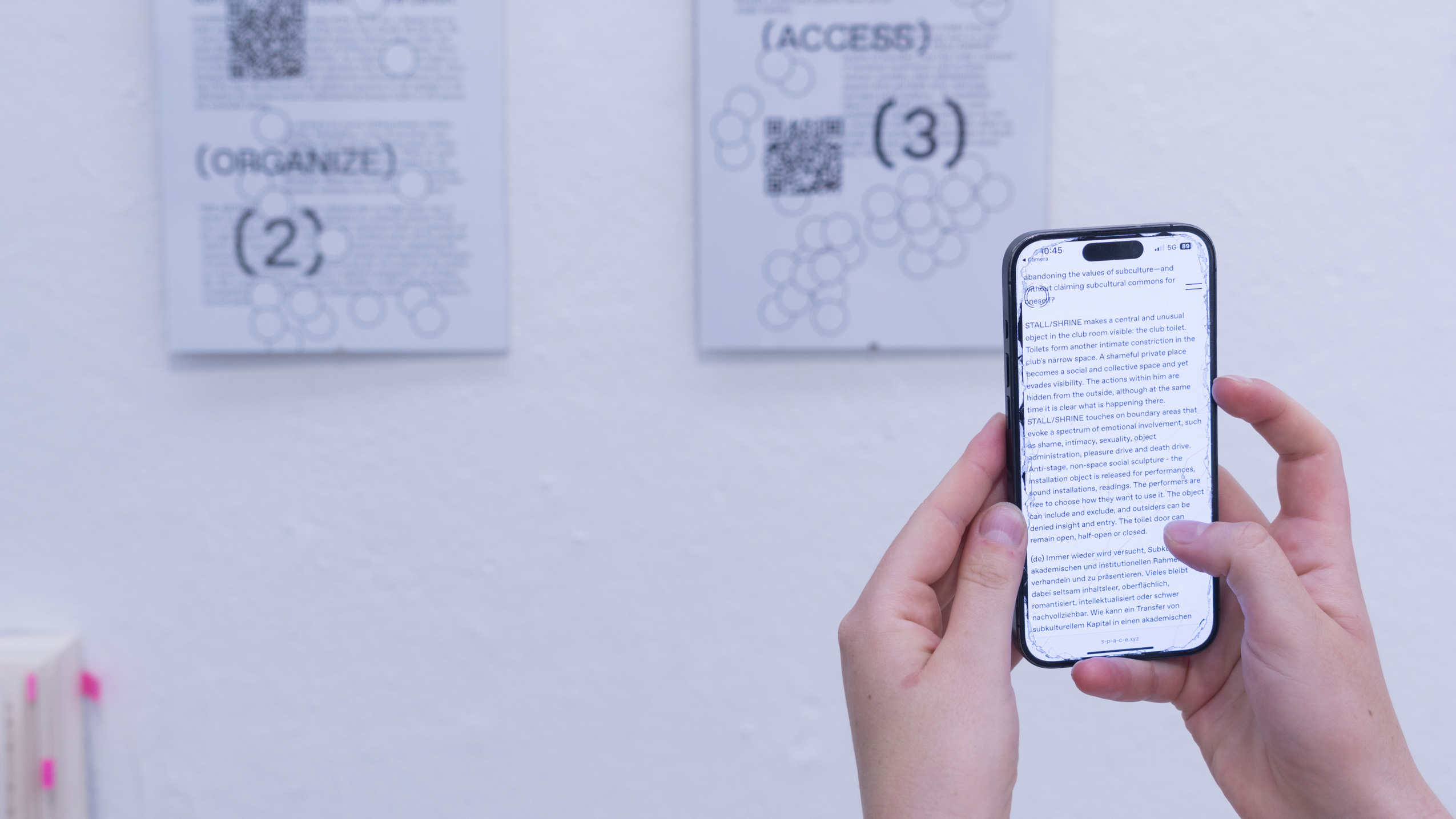 The installation experiments with different framings and categorizations. It shows how perception shifts through varying selections and markings, and how reality is subjectively constructed. The practice of raving creates a shared experiential space that must aim to exclude hegemonic power relations and instead center the marginalized, the subjectively affected, the Other, and the unfamiliar. Theoretical approaches are taken up and discarded, yet still function as a navigation system through the different layers of the participatory and interactive installation. Visitors are activated, encouraged to move through the installation – as bodies between the digital space of representation and the material physicality of the installation.