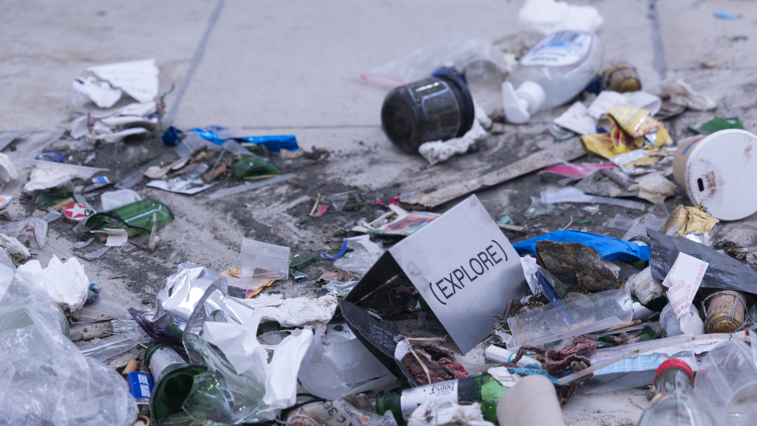 (NOTE: The safety officers at the Universität der Künste Berlin initially did not want to approve the installation. After being informed that the trash came from a queer cruising rave, they cited an increased risk of injury and infection.)